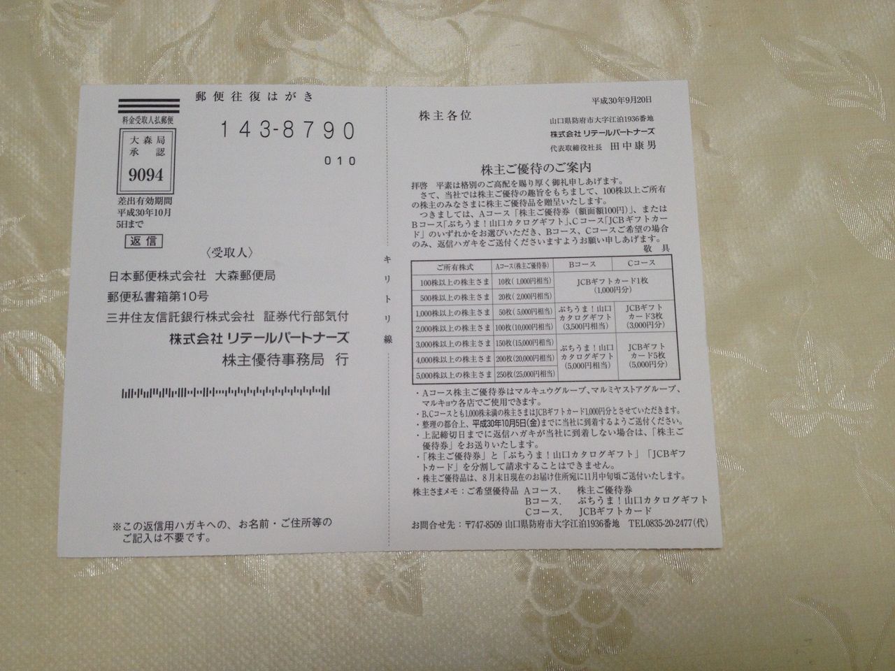 2018年 株主優待到着分9月