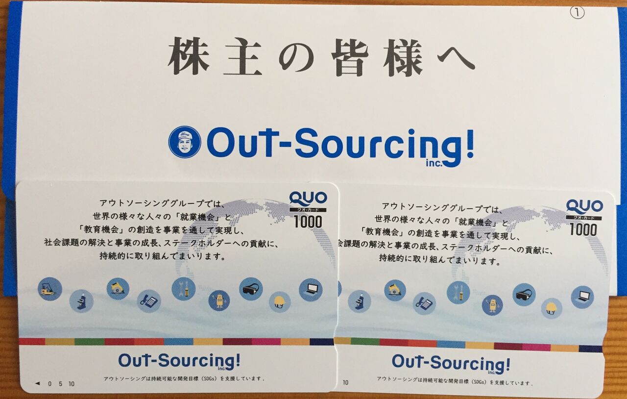 アウトソーシングから株主優待到着しました。
