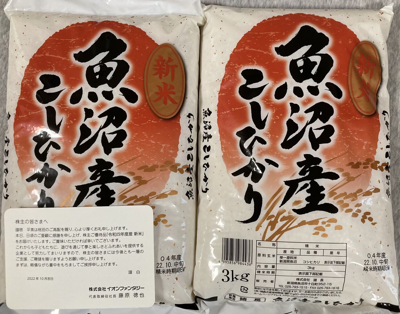 2022年10月29日 2022年5月10月 イオンファンタジーから株主優待到着 金券 お米 コメント数:0 コメント カテゴリ:金券&ポイント by fly_bainushima イオンファンタジーから株主優待到着しました。まず、5月に金券2000円×2で4000円です。ゲームなどで遊べますね。10月にお米が届いてきました。恒例の魚沼産こしひかり 3キロです。こちらも2口分です。今年の新米です。
