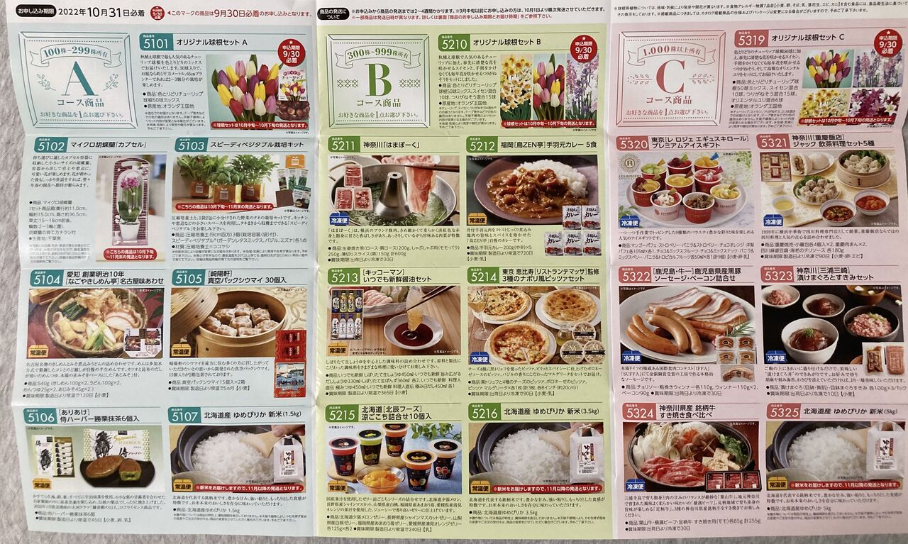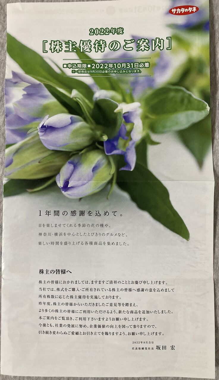 2022年10月29日 2022年9月 サカタのタネから株主優待到着 カタログ コメント数:0 コメント カテゴリ:優待商品 by fly_bainushima サカタのタネから株主優待到着しました。カタログでチューリップの球根や、食品です。目移りしますね。今回は、冷凍ピザを選択しました。