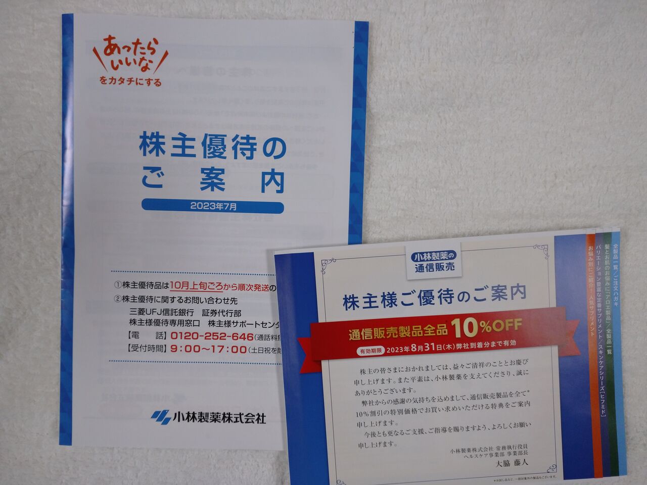 2023年08月12日 2023年8月 小林製薬から株主優待到着 コメント数:0 コメント カテゴリ:優待商品 by fly_bainushima 小林製薬から株主優待到着しました。5000円相当の商品が貰えますよ。