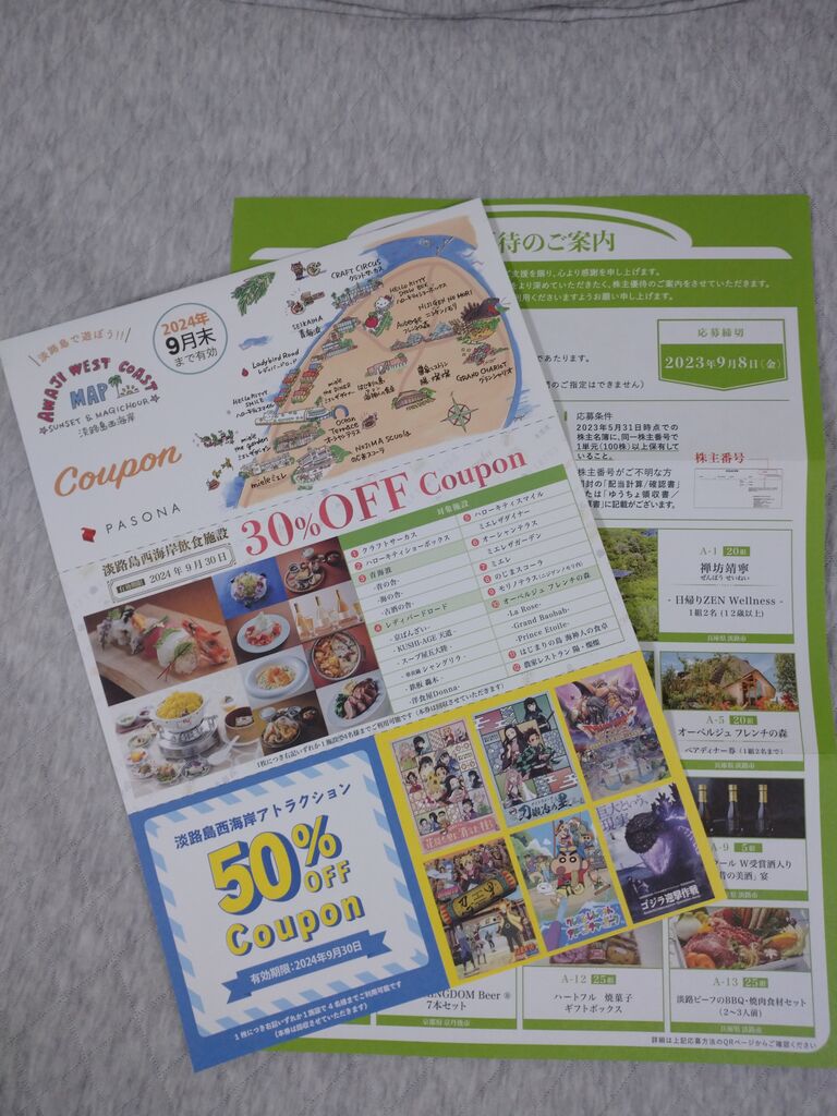 2023年08月15日 2023年8月 パソナから株主優待到着 コメント数:0 コメント カテゴリ:割引 by fly_bainushima パソナから株主優待到着しました。割引券です。ハローキティーと飲食店の割引ですね。昨年は、ホテルが当たりましたが、毎年は無理ですね。